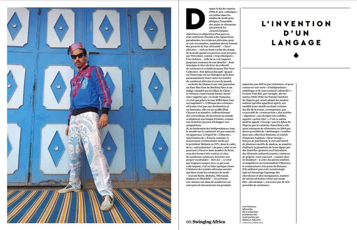 Emmanuelle Courrèges frames this burgeoning movement as a kind of African Swinging Sixties, tracing how emerging voices reject reductive Western scripts and assert an aesthetic vocabulary rooted in local identity and global sophistication. Whether through adire prints worn by Chimamanda Ngozi Adichie or the theatrical headdresses of Lafalaise Dion, each image and essay asserts fashion as activism, culture‑making, and continental pride.