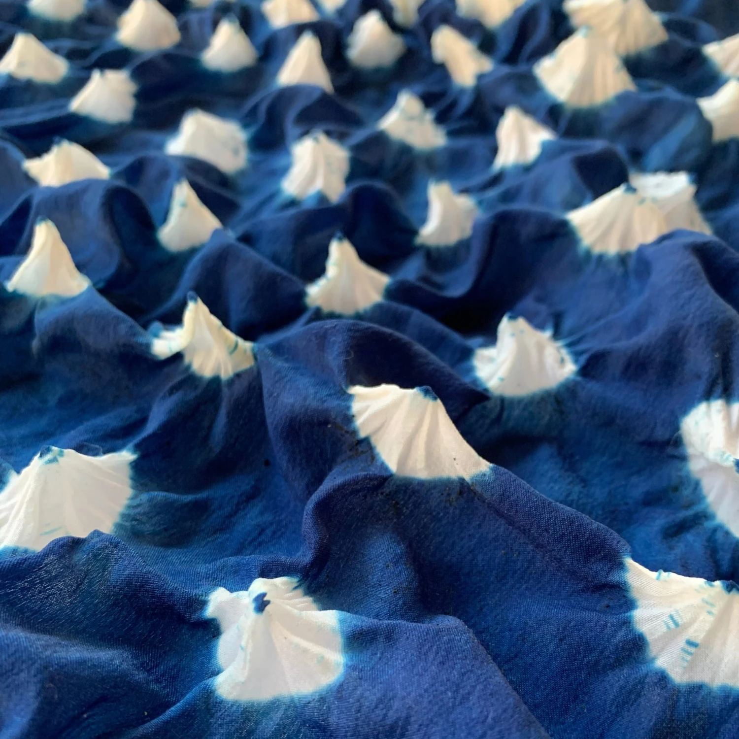 For Mira Gupta, as she writes in her article “Lessons in Chemistry,” “There’s something thrilling about resist dyeing. You control the dye but not the result. It’s like controlled chaos, a surprise party in every vat.” Such a boldly colourful assertion prompted me to question what it is it about resist dyeing that makes it irresistible.