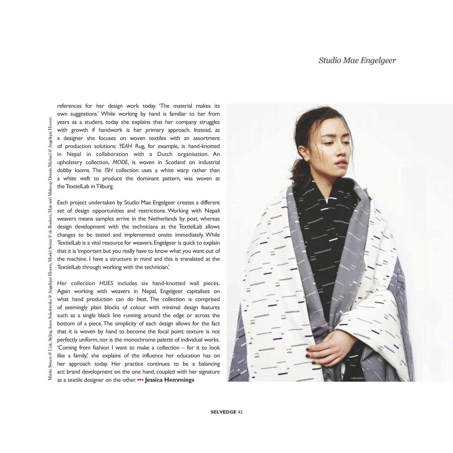 All of the designers in this issue work with old materials in new ways, new materials in old ways, and all sorts of combinations that lie in between these binary approaches. Now, natural and man-made materials are being turned on their heads as the hierarchy undergoes a seismic shift.” Polly Leonard, Founder, Selvedge Magazine