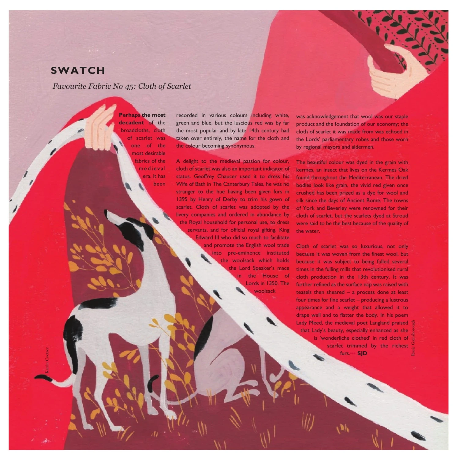 Colour plays a part in this issue too from the subtle hues in Italian collections this season to the many shades of red, from madder to carmine, found in carpets and stained glass as well as medieval scarlett and millennial pink. Gone is the ultra-feminine baggage pink once carried; it now plays a serious role in symbolising the nuances of today’s gender politics. It is therefore no surprise that Valerie Steel has chosen explore the colour in her newest show at the Fashion Institute of Technology in New York, reviewed for us by Jo Anne Greko. Enjoy a rose-tinted holiday.”