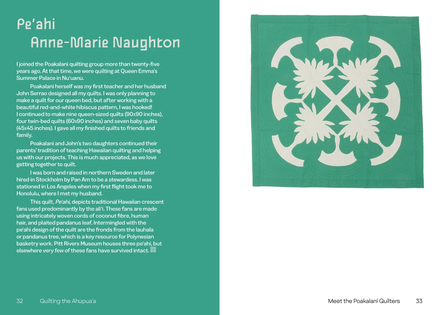 Mauka to Makai traces the ahupuaʻa—the ancient Hawaiian land‑division system that spans upland forest to sea—as a holistic ecological model woven into the tradition of Hawaiian quilting. Through fifteen newly commissioned quilts created with the Poakalani quilting group and curated by Pitt Rivers Museum, Marenka Thompson‑Odlum charts how these textile narratives reflect ancestral ecological knowledge confronting climate crisis, colonial disruption, and cultural resurgence. Edited as a 120‑page paperback, the book pairs each quilt with oral histories, environmental testimony, and a glossary of ʻŌlelo Hawaiʻi that root stitch in place and purpose.