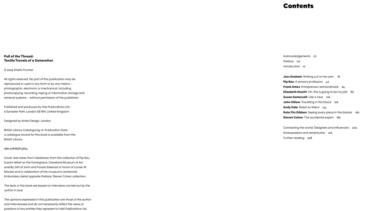 Pull of the Thread: Textile Travels of a Generation is a vivid, deeply human narrative that celebrates the journeys, exchanges and legacies woven through textiles. Sheila Fruman invites the reader to follow her across continents—Central Asia, the Middle East, Europe and North America—gathering stories, patterns and traditions that reveal how a generation of makers has preserved and reinvented ancestral crafts.